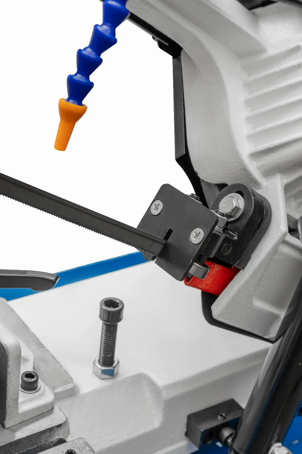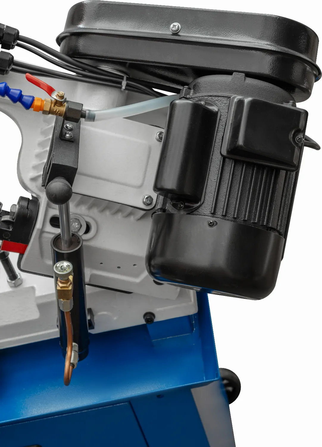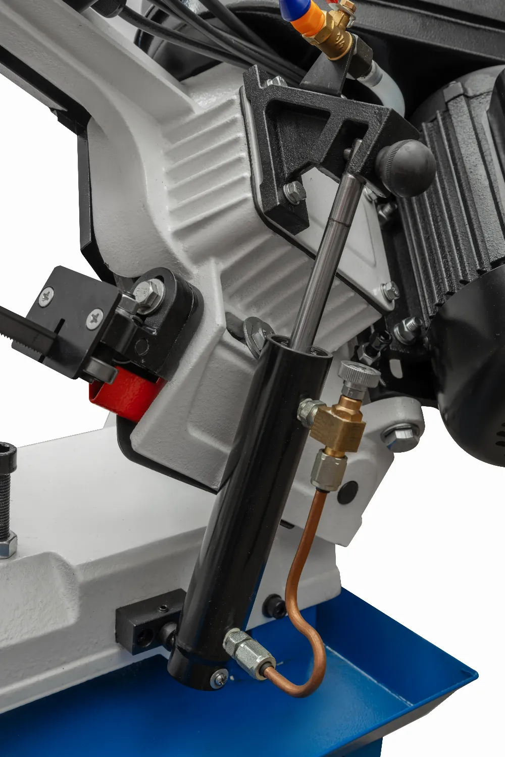 - Скорость опускания пилы контролируется гидравлическим цилиндром.