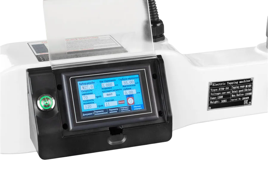 - Двойная система защиты метчика от поломки, состоящая из предохранительной головки и программного обеспечения, которые при излишней нагрузке прекращают движение.