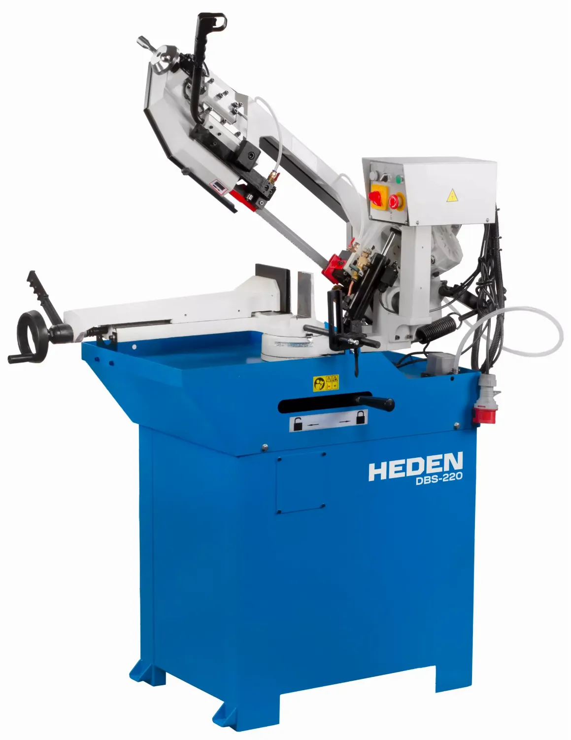 Предназначен для пиления заготовок, под различными углами и при частой смене угла. В рабочей зоне резания полотно точно ведется двумя направляющими головками, благодаря натяжению шкива. Натяжной шкив приводится в движение приводным шкивом, который в свою очередь, приводится через редуктор. Пила опускается под собственным весом.