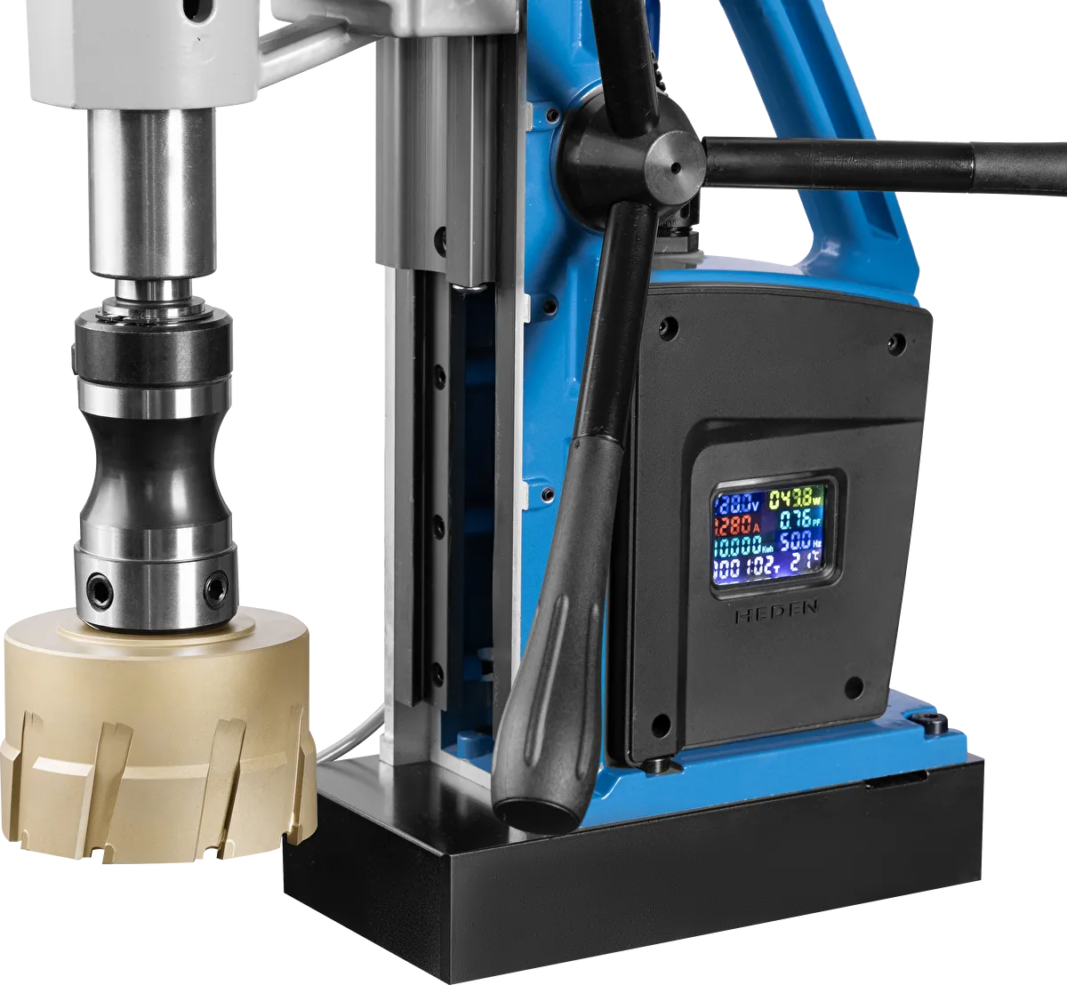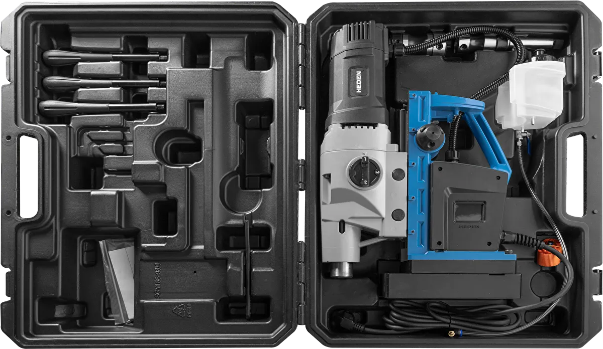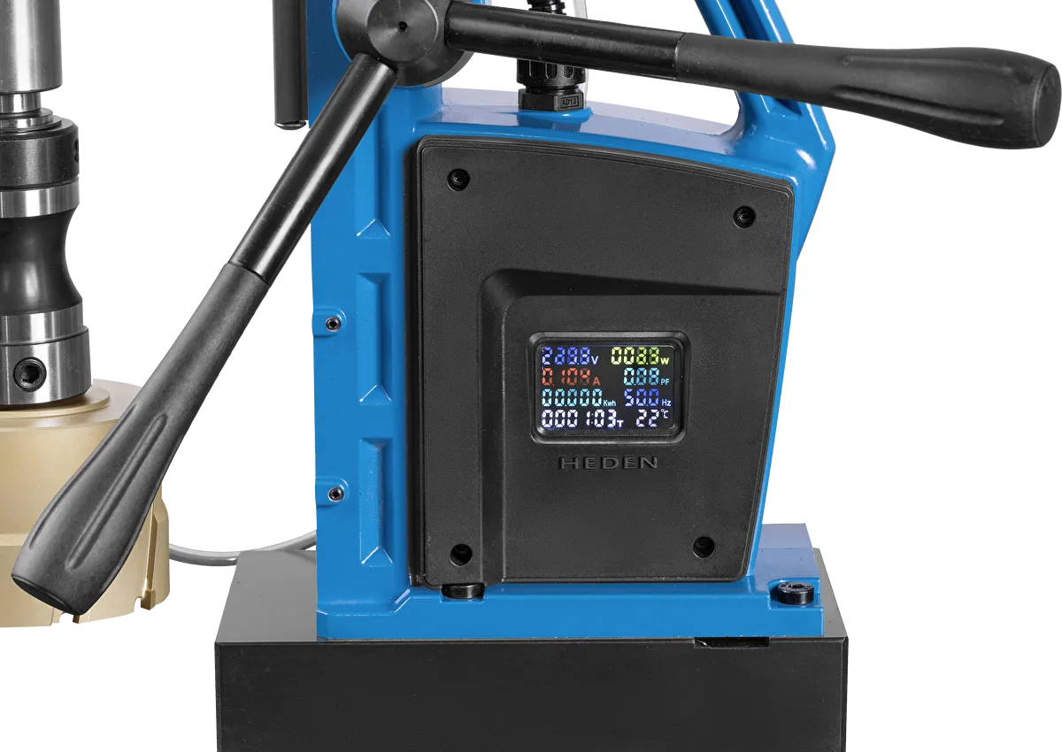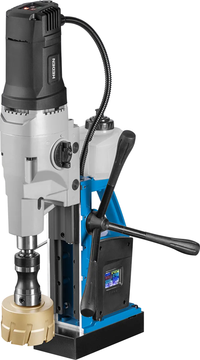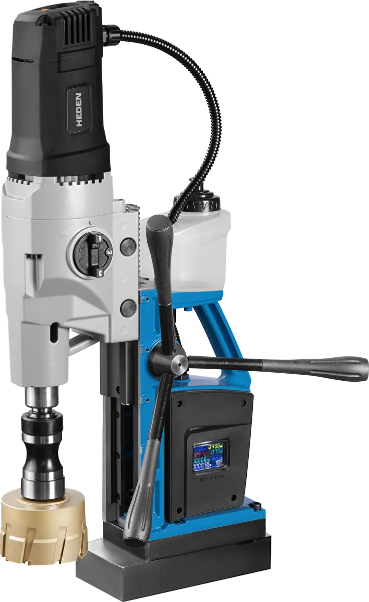 Выполняет сверление корончатыми сверлами до Ø100 мм и спиральными сверлами до Ø30 мм. Надежно фиксируется на горизонтальных стальных поверхностях благодаря мощной магнитной основе.