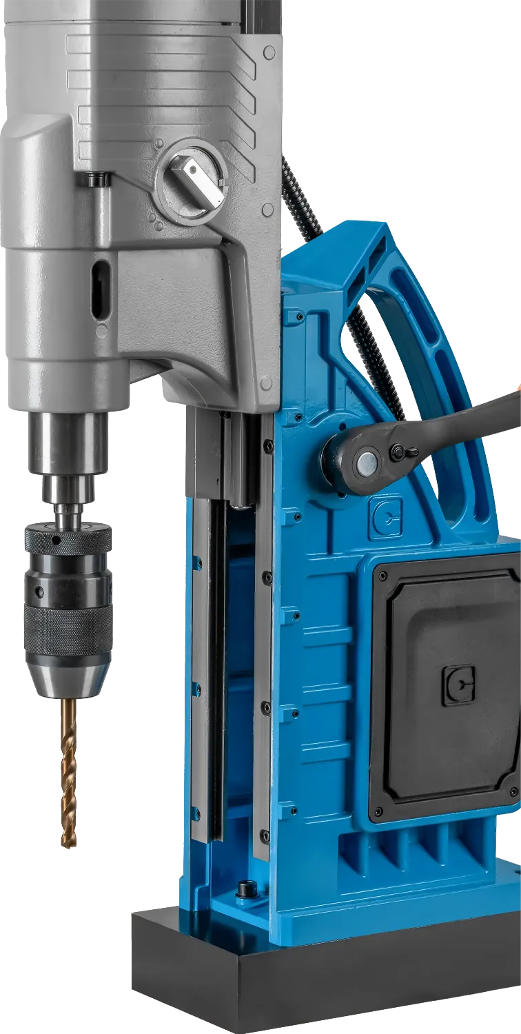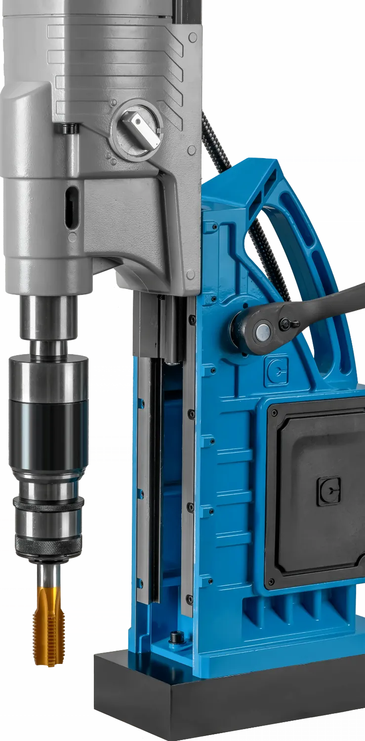 Многофункциональный магнитный станок DM-130V4 с самым мощным приводом и широким диапазоном регулировки частоты вращения. Выполняет сверление корончатыми сверлами до Ø 130 мм и нарезание резьбы до М45.