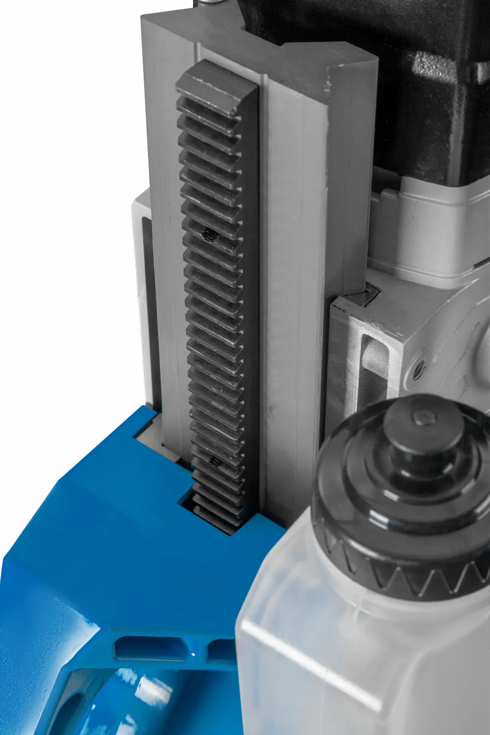 - Бачок подачи смазочно-охлаждающей жидкости расположен на корпусе сверлильного станка.