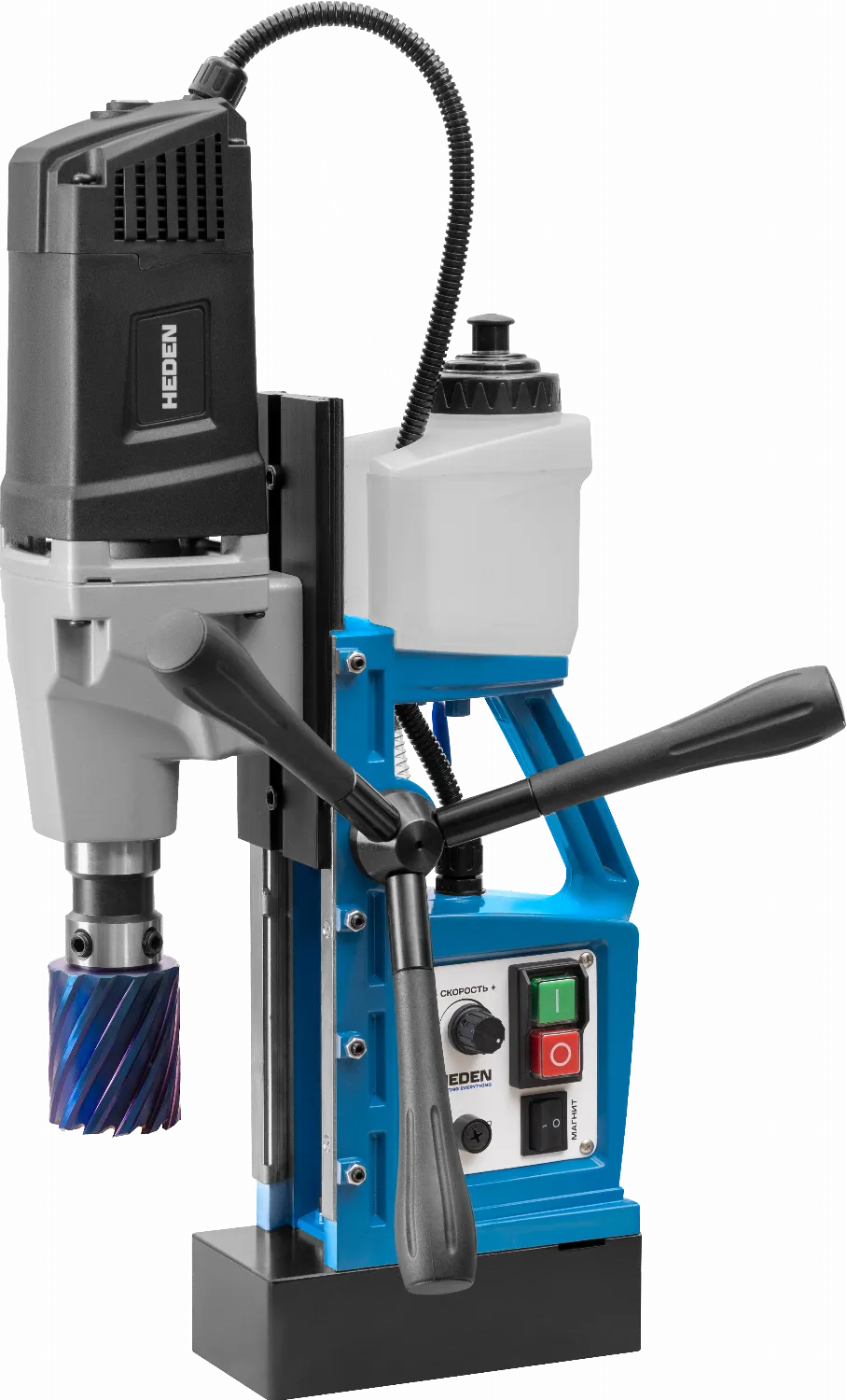 Предназначен для работ в производстве и монтаже металлоконструкций. Выполняет сверление корончатыми сверлами до Ø 50 мм.