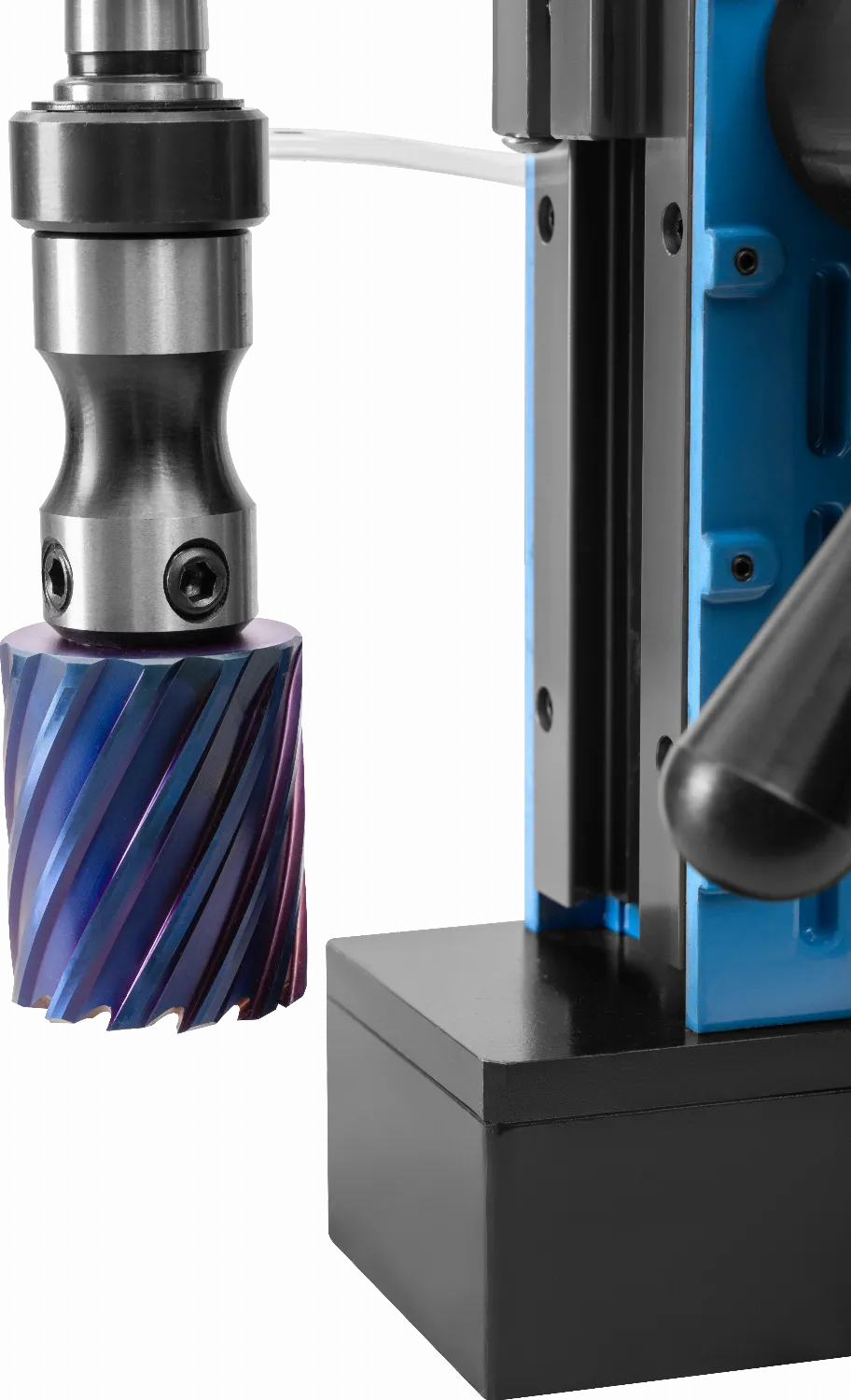 - Износостойкие направляющие типа «двойной ласточкин хвост» для работы с длинными сверлами или сверления ниже уровня основания станка.
