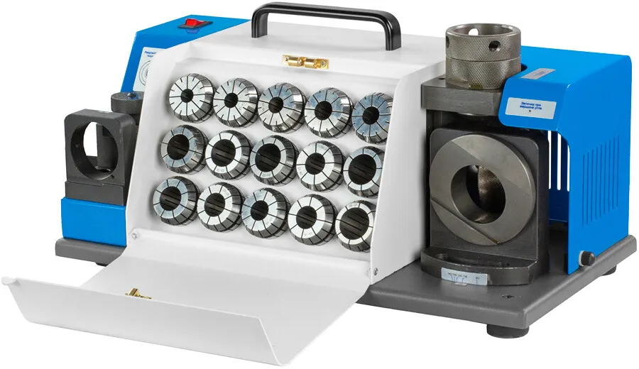 - Компактная конструкция со встроенным ящиком для хранения цанг.