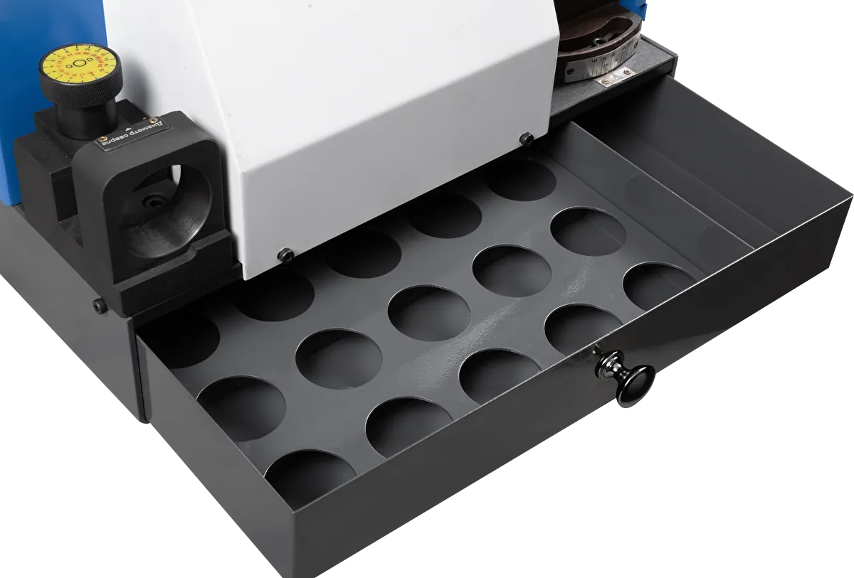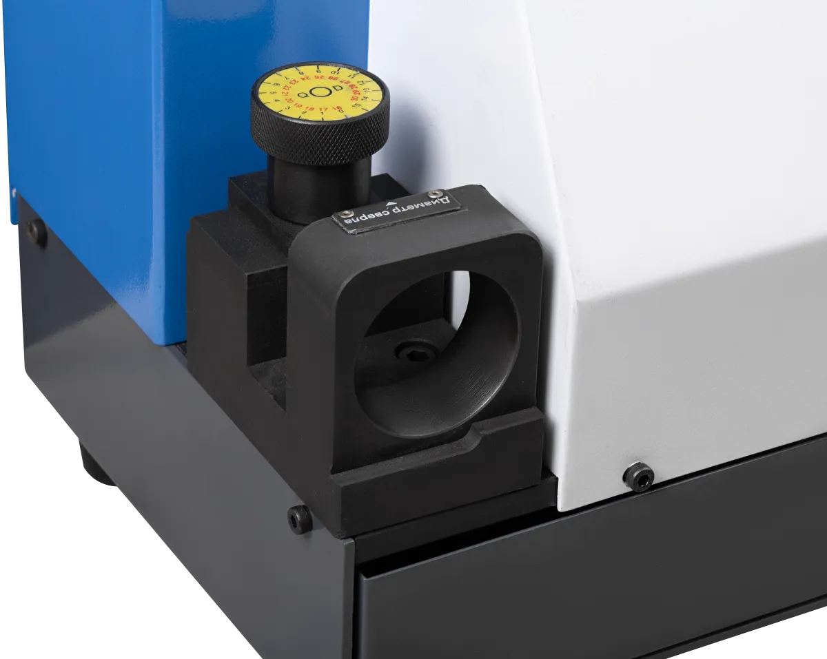 - Регулируемый неподвижный центр для лучшего контроля качества и точности заточки.